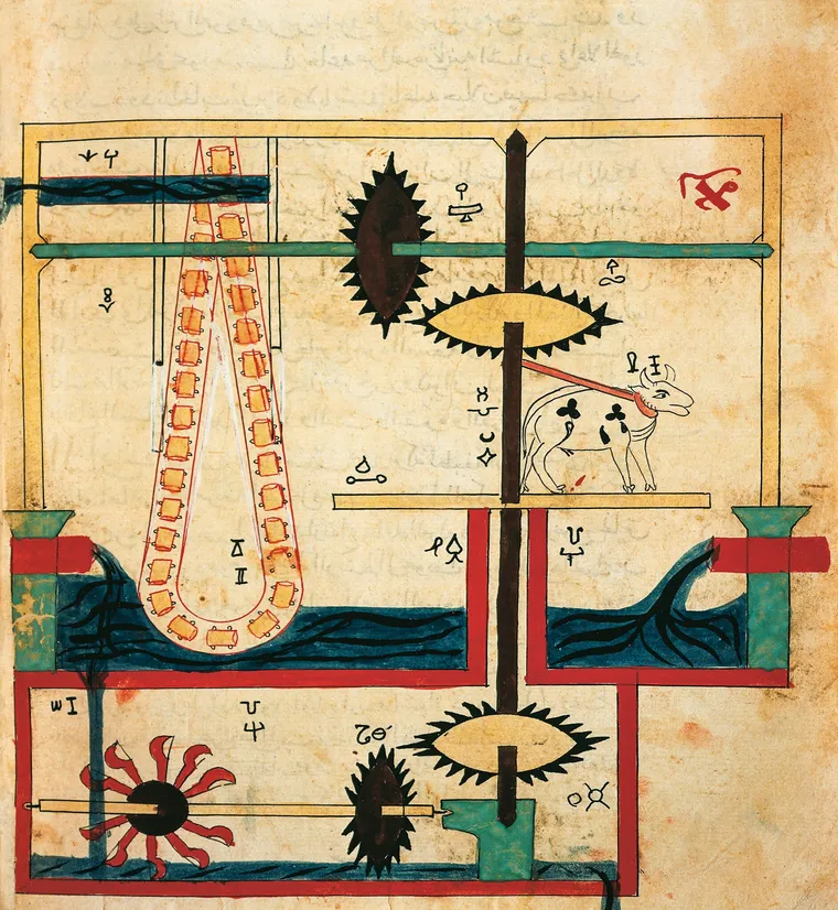 Inspiré par les sciences anciennes venant d’Inde, de Grèce, de Perse, de Chine et du monde arabe, Al-Jazari conçut des machines novatrices et utiles. Parmi ses inventions les plus célèbres figurent :