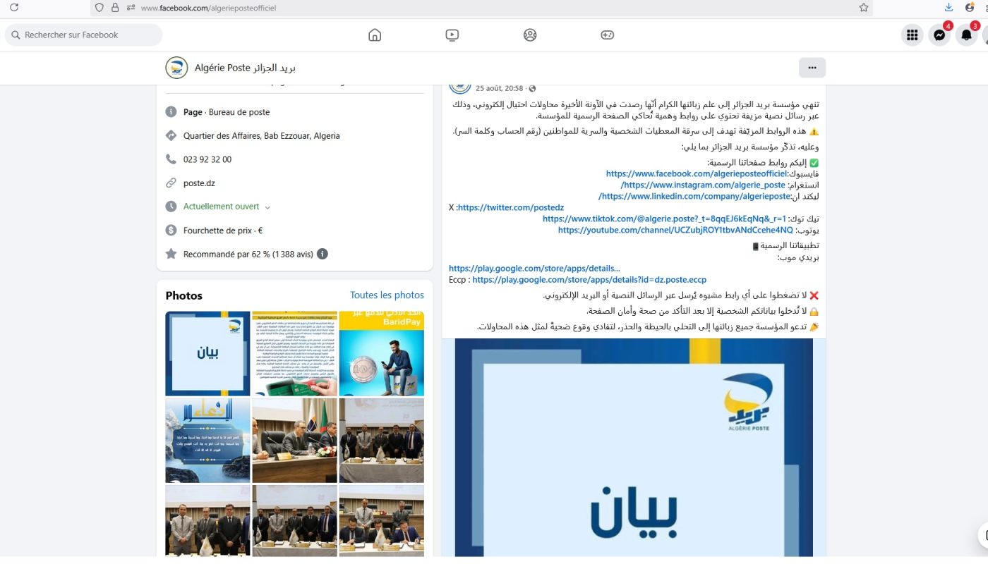 Le communiqué d’Algérie Poste vise à contrer les tentatives de phishing et d’escroqueries qui utilisent l’image de l’entreprise pour soutirer des informations sensibles aux citoyens. Le plus grand danger se trouve sur les réseaux sociaux, où des cybercriminels créent de fausses pages pour tromper la vigilance des utilisateurs.